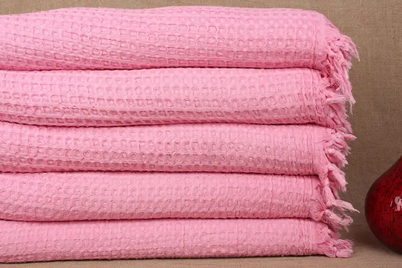 Couch Throw Pink Waffle Blanket, Organic Cotton, Beige, 79x103 Inches
