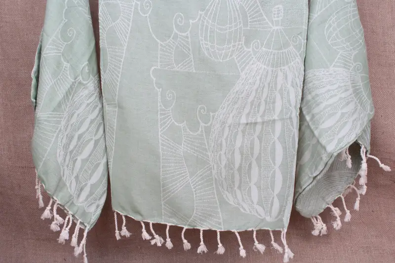Kitchen Towel Patterned Peshkir Khaki Green with Beige, 18x36 Inches