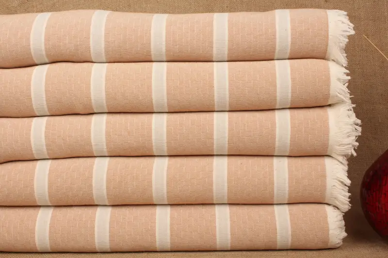 Sofa Blanket Turkish Milky Brown-Gray Striped Throw, 83x95 Inches