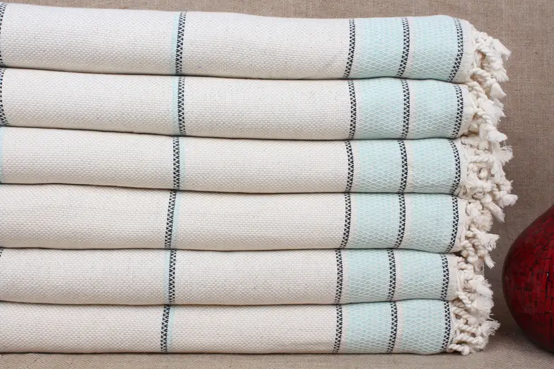 Bedcover Mint Striped Throw, 95x103 Inches Linen Blanket, Beige