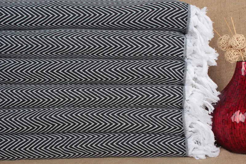 Wedding Gift Chevron Turkish Cotton Blanket Beige, 71x87 Inches