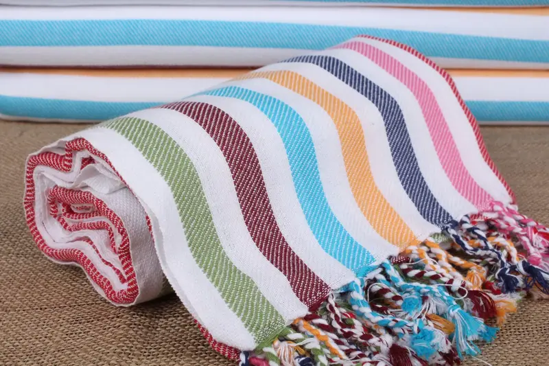 Personalized Turkish Beach Towel Beige Rainbow Stripes, 40x71 Inches
