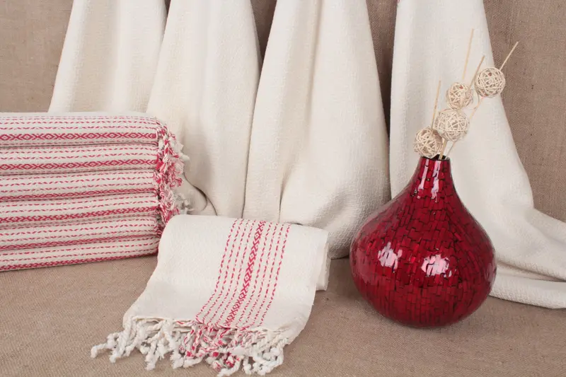 Turkish Bath Towel Organic Cotton Geometric, Beige, 38x71 Inches