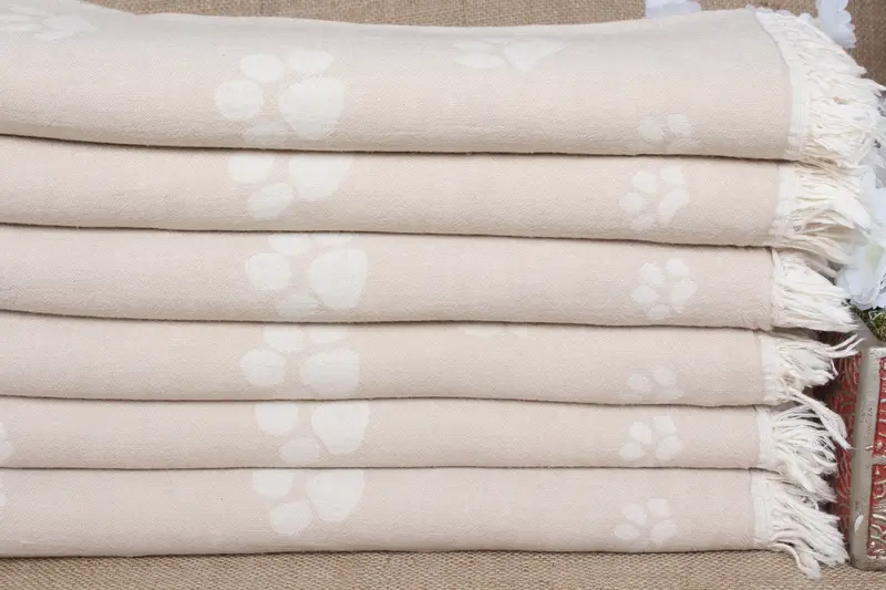 Personalized Turkish Towel Beach Beige Paw Design, 36x71 Inches