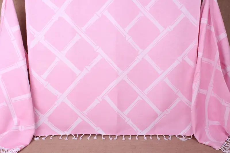 Monogram Beach Towel Pink Bamboo Branch, Custom Turkish Cotton, 40x71 Inches
