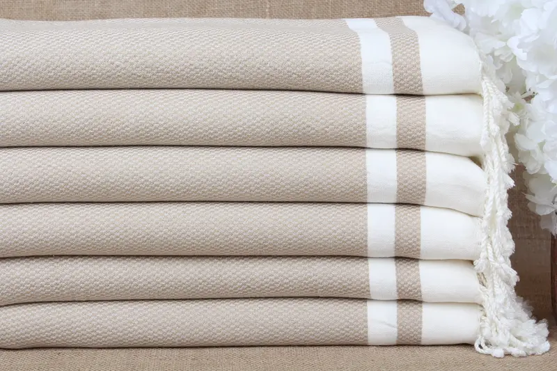 Personalized Turkish Towel Beige Striped, 36x71 Inches