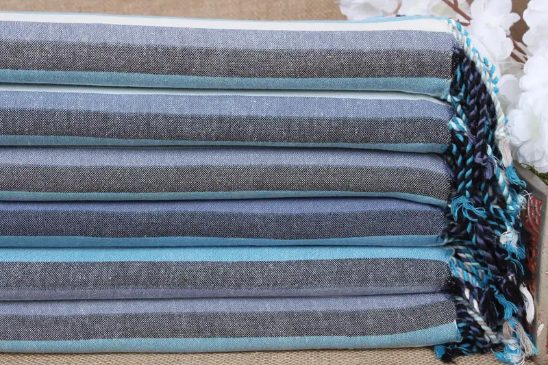Beach Towel Monogrammed Turkish Cotton Blue Stripes, 36x71 Inches