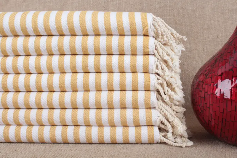 Organic Cotton Towel Striped Peshtemal Beige, 40x71 Inches