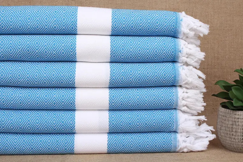 Turkish Bath Towel Royal Blue Organic Cotton Diamond, 40x71 Inches