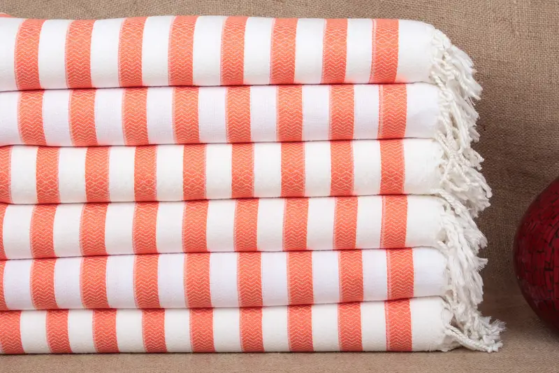 Turkish Beach Towel Organic Cotton Orange Stripes, 36x71 Inches