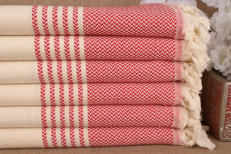 Home Decor Gift Red Cotton Towel Striped, Turkish Beach Towel, 40x71 Inches