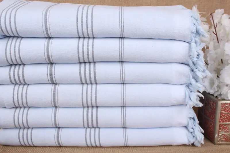 Gift For Her Blue Striped Terry Cotton Towel, 36x67 Inches