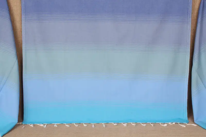 Petrol Green-Turquoise Striped Turkish Beach Towel, 36x67 Inches