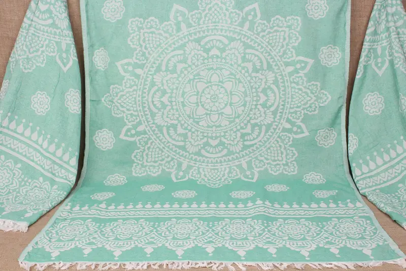 Beach Towel Turkish Cotton Floral Patterned Benetton Green, 36x73 Inches