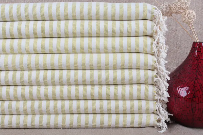 Turkish Hand Towel Organic Cotton Beige Striped, 24x40 Inches