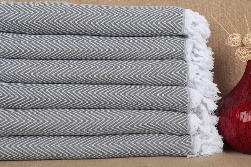 Turkish Throw Blanket Beige Chevron, Organic Cotton, 79x95 Inches