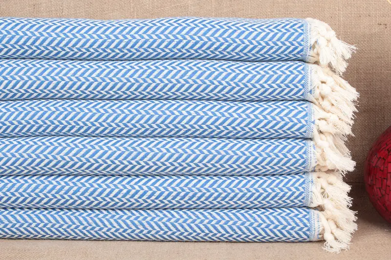 Dish Towel Organic Cotton Chevron Sax Blue, 18x36 Inches