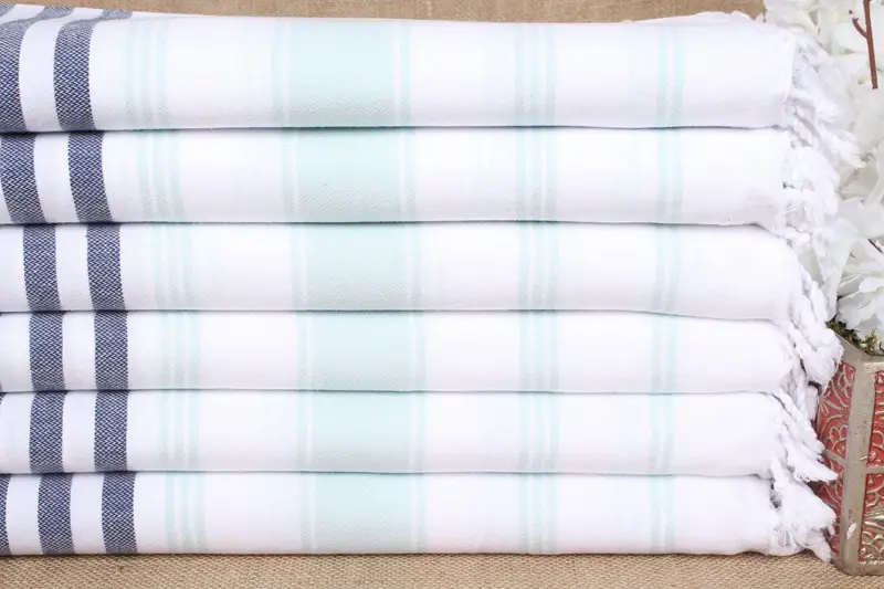 Monogrammed Turkish Cotton Beach Towel, Navy Blue-Mint Stripes, 40x71 Inches