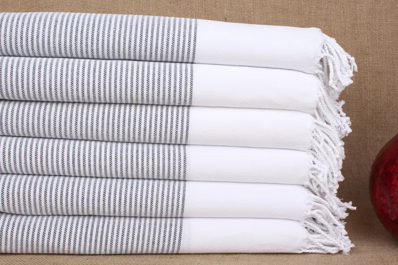 Custom Striped White Turkish Towel Bridesmaid Gift, 40x71 Inches