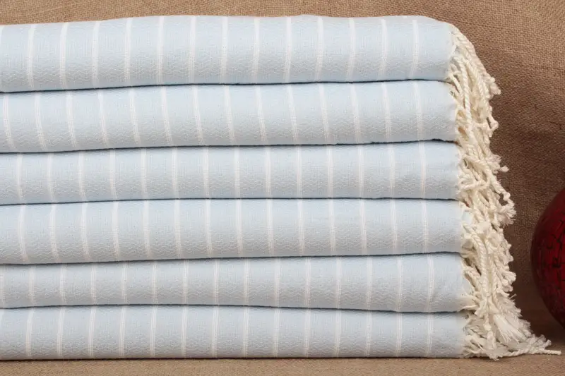 Beach Towel Organic Cotton Baby Blue Stripes, 40x71 Inches