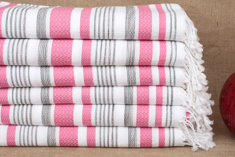 Pink-Gray Striped Peshtemal Beach Towel, Organic Cotton, 38x71 Inches