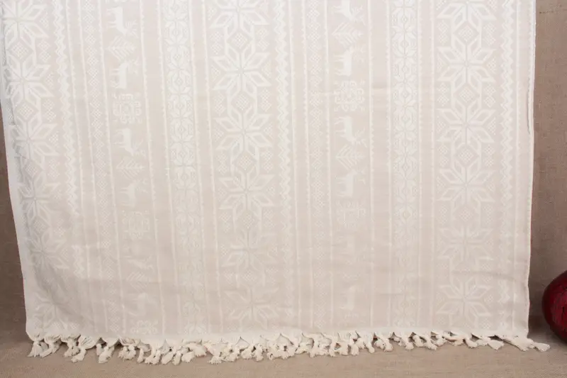 Home Decor Beige Christmas Patterned Throw, Organic Cotton, 87x95 Inches