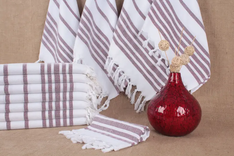 Turkish Hand Towel Organic Cotton Beige Chevron, 24x36 Inches