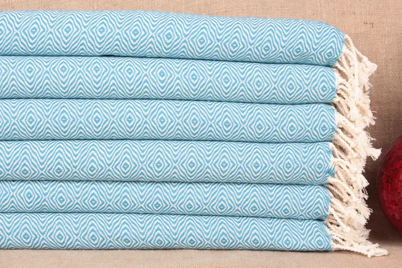 Turkish Towel Organic Cotton Turquoise Beige, 18x36 Inches