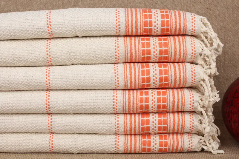 Monogram Tea Towel, Orange Linen Kitchen Hand Towel, 20x40 Inches