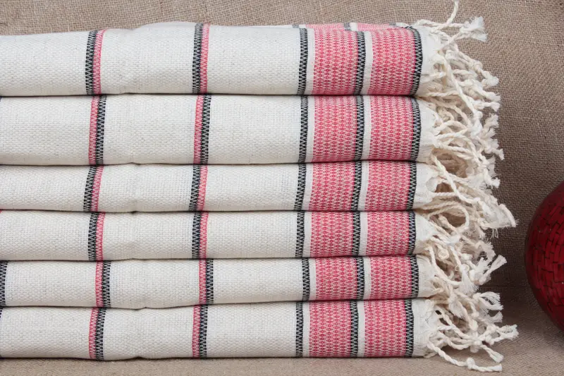 Turkish Hand Towel Red Washcloth Striped Beige, 20x40 Inches