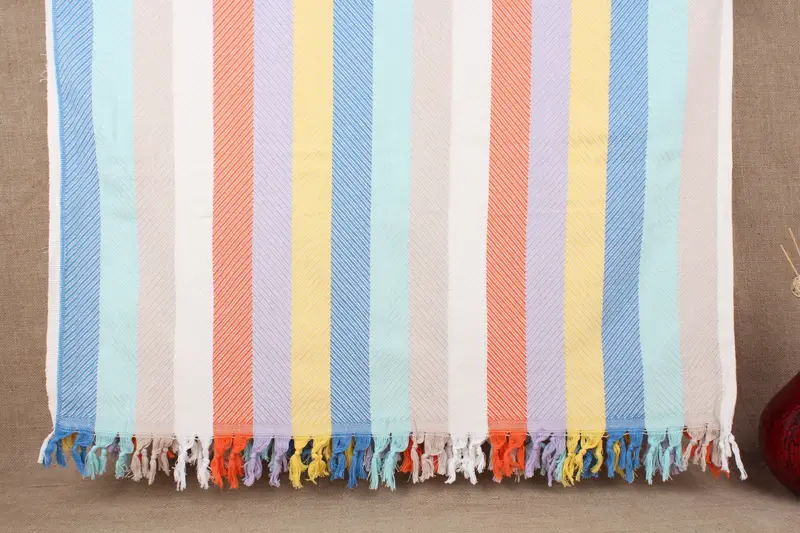 Turkish Cotton Throw Blanket Beige Chevron, 75x91 Inches