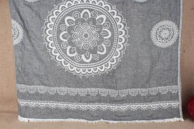 Turkish Bedspread Aztec Patterned Throw, Black Warm, 79x87 Inches