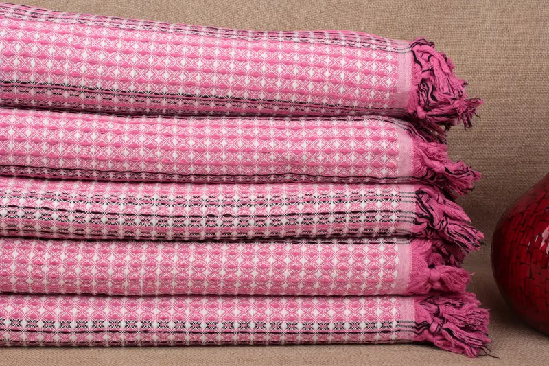 Sofa Blanket Fuchsia Striped Bedcover, Organic Cotton, 71x95 Inches