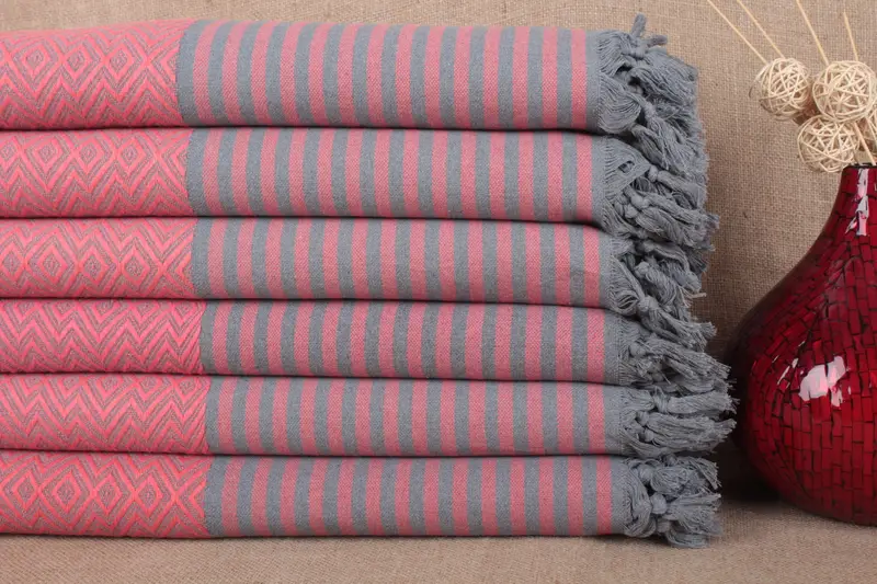 Turkish Blanket Handmade Organic Cotton Beige Diamond, 79x103 Inches