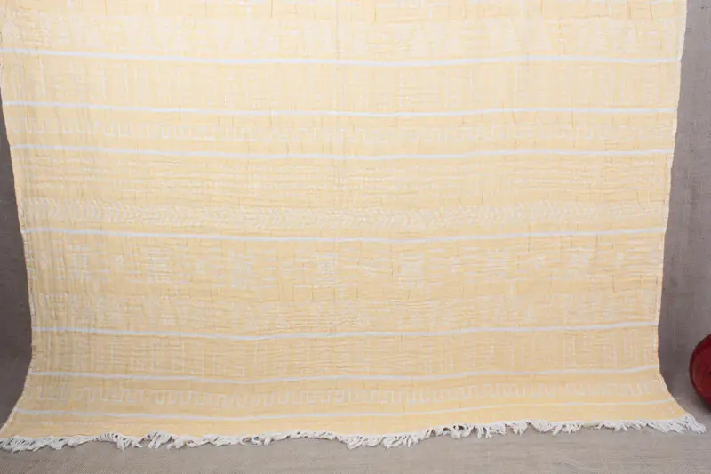 Large Towel Aztec Design Bedspread Yellow, Beige, Organic Cotton, 56x75 Inches
