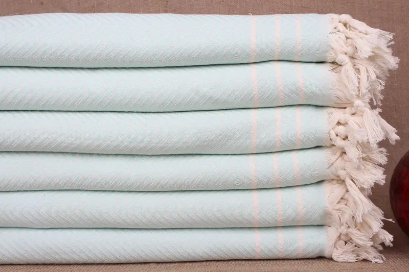 Turkish Blanket Handmade Mint Beige Cotton Diamond, 71x95 Inches