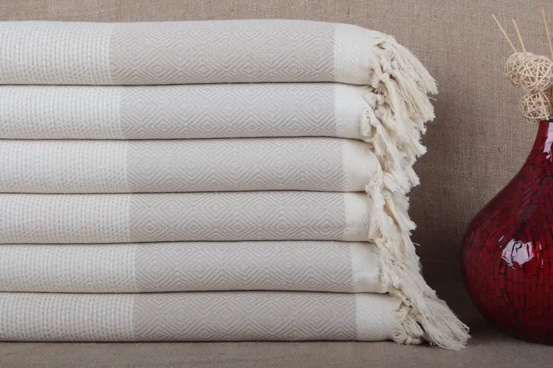 Turkish Picnic Blanket Handmade Organic Cotton Beige, 79x99 Inches