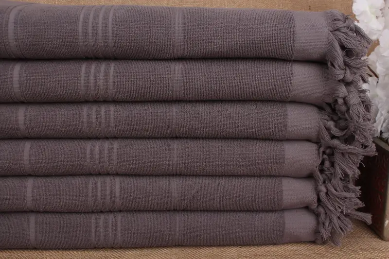 Bath Towel Dark Gray Cotton Striped Terry, 36x71 Inches