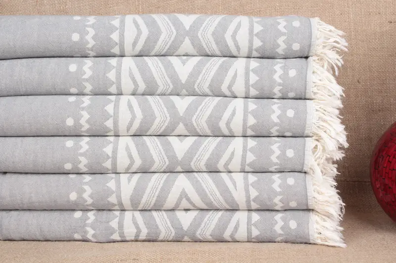 Hand Towel Turkish Cotton Aztec Pattern Dark Gray, 24x40 Inches