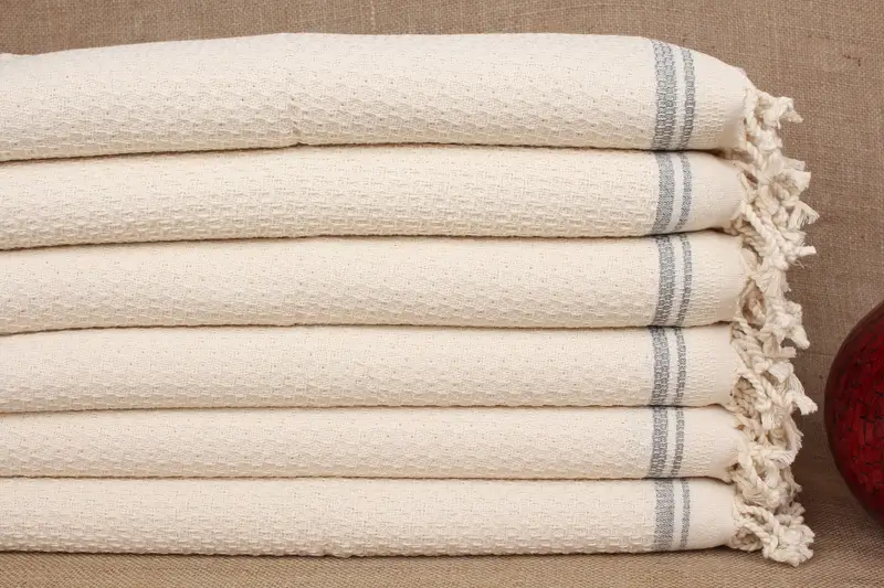 Camping Tea Towel Organic Cotton Dark Gray Striped, 18x38 Inches