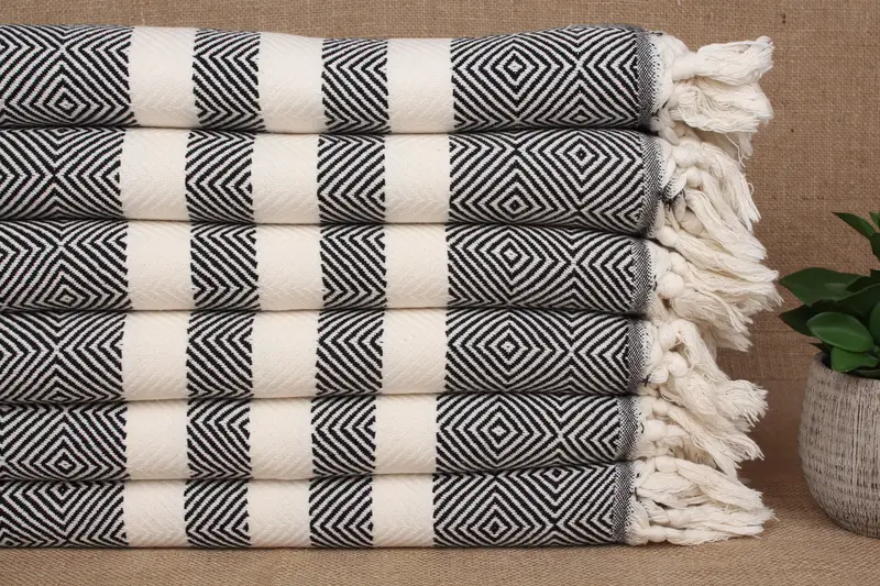 Monogrammed Kitchen Towel Embroidered Black Diamond, 20x32 Inches