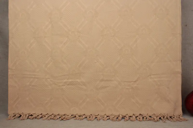 Turkish Bedspread Mustard Geometric Throw, Organic Cotton, Beige, 87x95 Inches