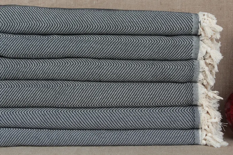 Sofa Blanket Turkish Throw Beige Chevron, 67x83 Inches