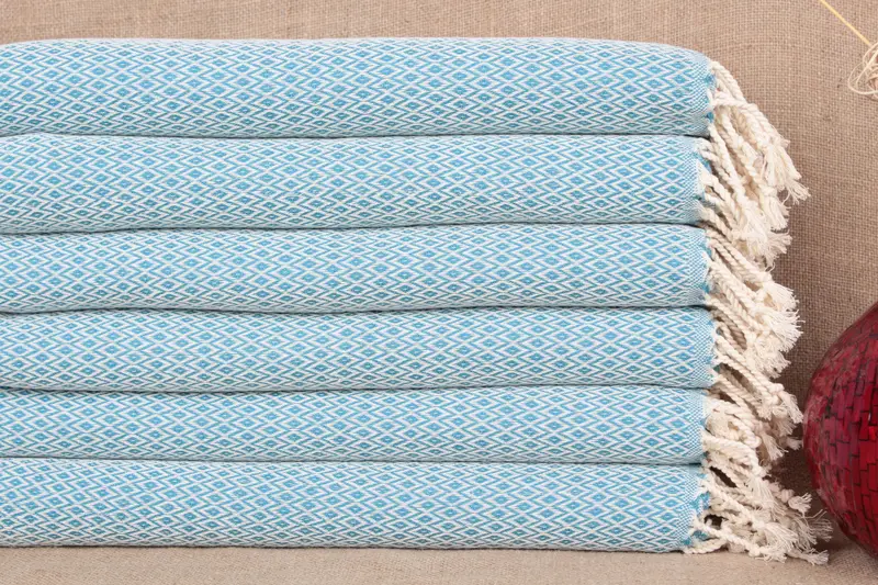 Dish Towel Diamond Turquoise and Beige, 20x40 Inches