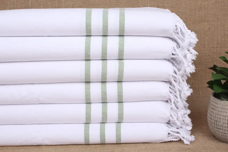 Monogram Hand Towel Olive Green Striped, 24x40 Inches