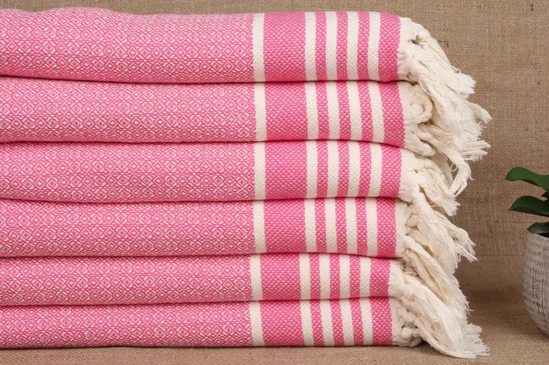 Guest Hand Towel Embroidered Pink Diamond, Organic Cotton, 16x32 Inches