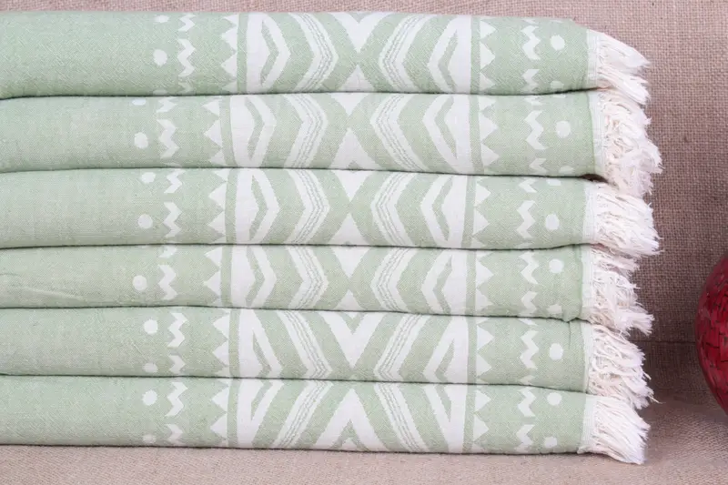 Turkish Towel Aztec Patterned Hand Towel Khaki Green, 24x40 Inches
