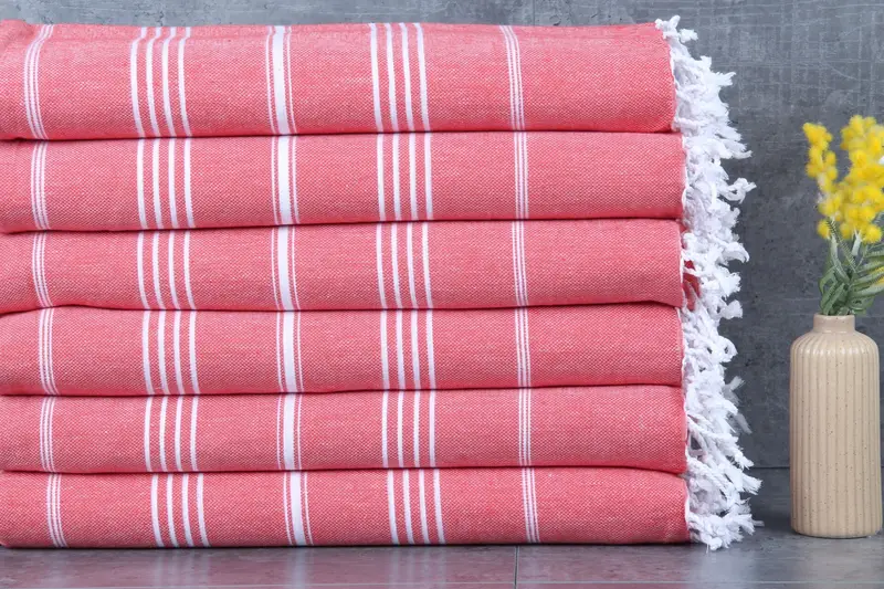 Turkish towels are characterized by their fiber composition, specifically 100% organic Turkish cotton. This material ensures exceptional absorbency, with water absorption increasing after each wash, making them ideal for various applications. Weighing 265 grams, these towels measure 40x71 inches or 100x180 centimeters, with a hand-weaving tolerance of 1-2.5 cm.