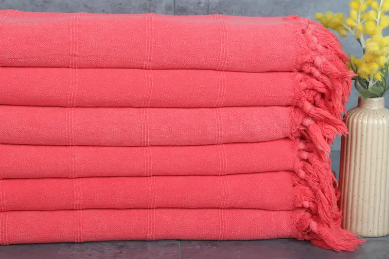 Characterized by 100% organic Turkish cotton, these towels ensure superior absorbency and durability. Each towel, weighing 370 grams, measures 36x67 inches or 90x170 centimeters, with hand-weaving tolerances of 1-2.5cm. The natural dyeing process enhances their aesthetic appeal.