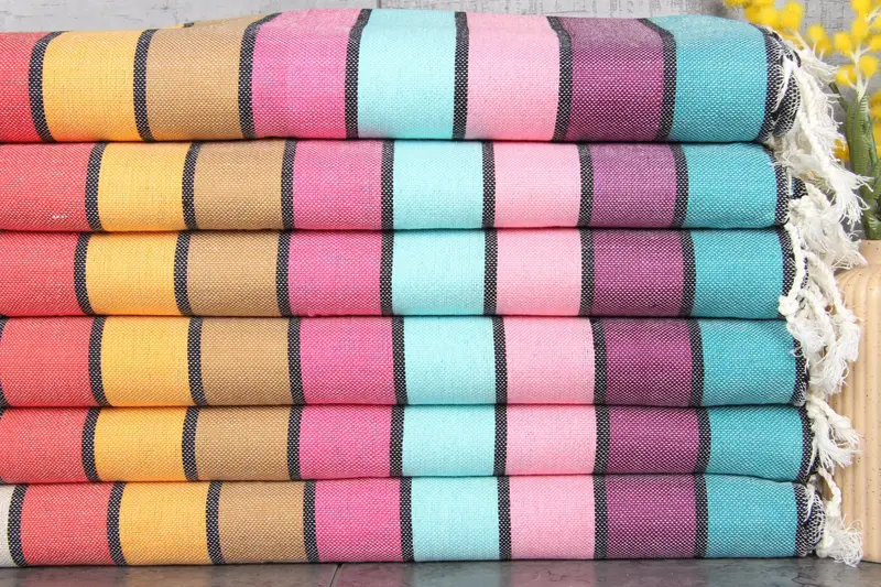 Ensuring premium quality, these towels are crafted from 100% organic Turkish cotton, which is naturally dyed, resulting in a softer and more stylish product. Characterized by an impressive weight of 320 grams, the towels measure 40x71 inches or 100x180 centimeters. Hand-woven with traditional techniques, dimensions may have tolerances of 1-2.5 cm.